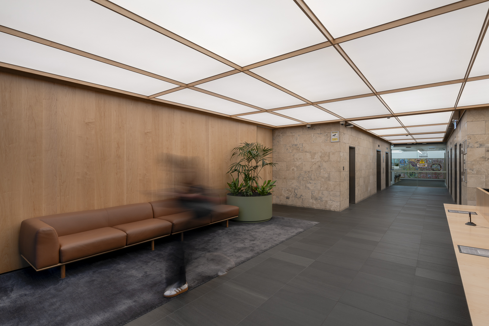 - Project Considerations Newmat ceiling / Maintaining tenant thoroughfare during construction / Upgrading the building lobby including reception desk
