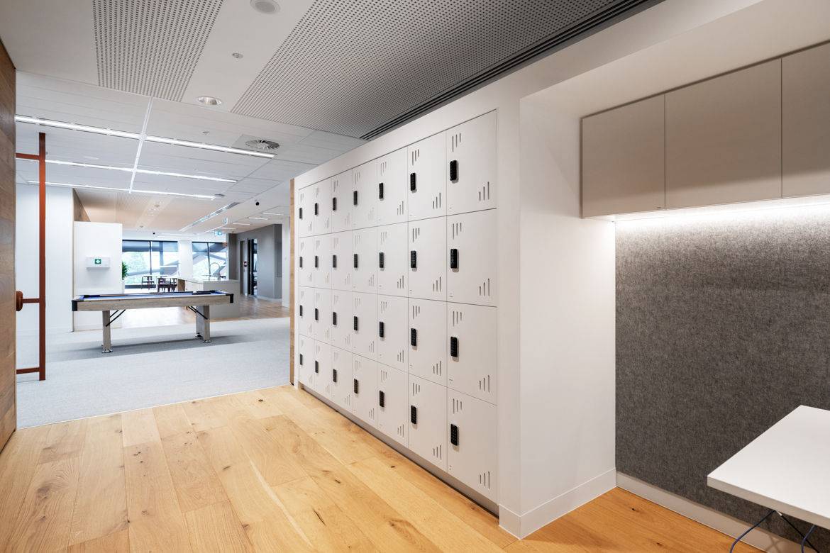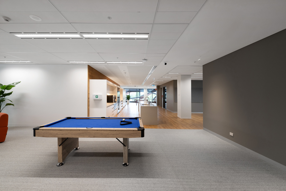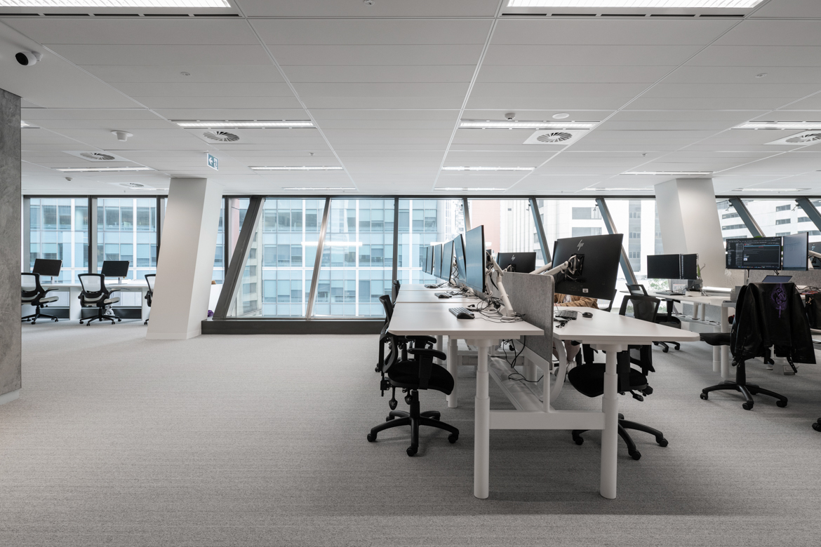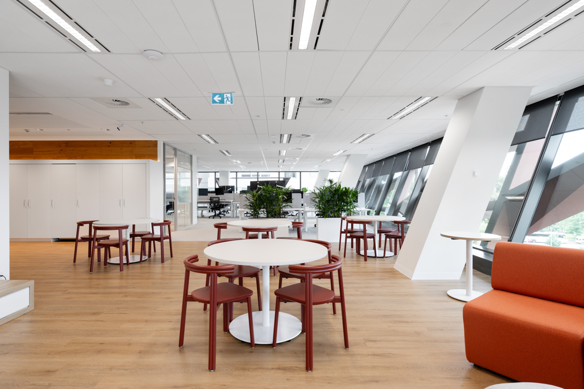 An open, collaborative workplace today needs to anticipate future business growth. For InfoTrack’s Sydney office, we drew on our existing relationship with the company to create a contemporary workspace with flexibility. International Tower 2’s high-level management systems required thorough coordination and strategic planning among the project team. This way we were able to demolish outdated spaces and finishes and supply and instal 253 workstations, furniture, kitchen joinery, new collaboration spaces, wall panelling and refreshed finishes, as well as relocating services