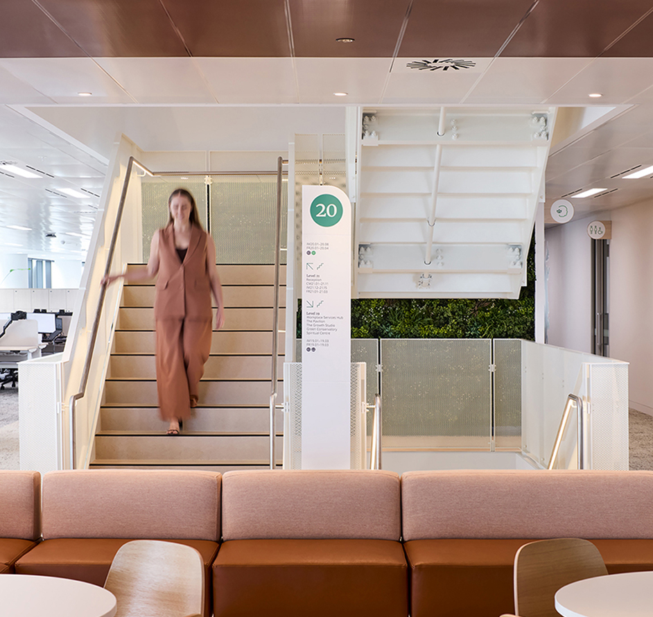 In order to optimise its Sydney office footprint, Insignia Financial consolidated its Kent Street, Hickson Road and Pacific Highway offices into the new ‘Parkline Place’ location at 252 Pitt Street, Sydney. Designed to enhance collaboration and flexibility, the six-floor fitout spans 8,847 sqm and includes interconnecting stairs between all levels and three fire compartments separating the floors.