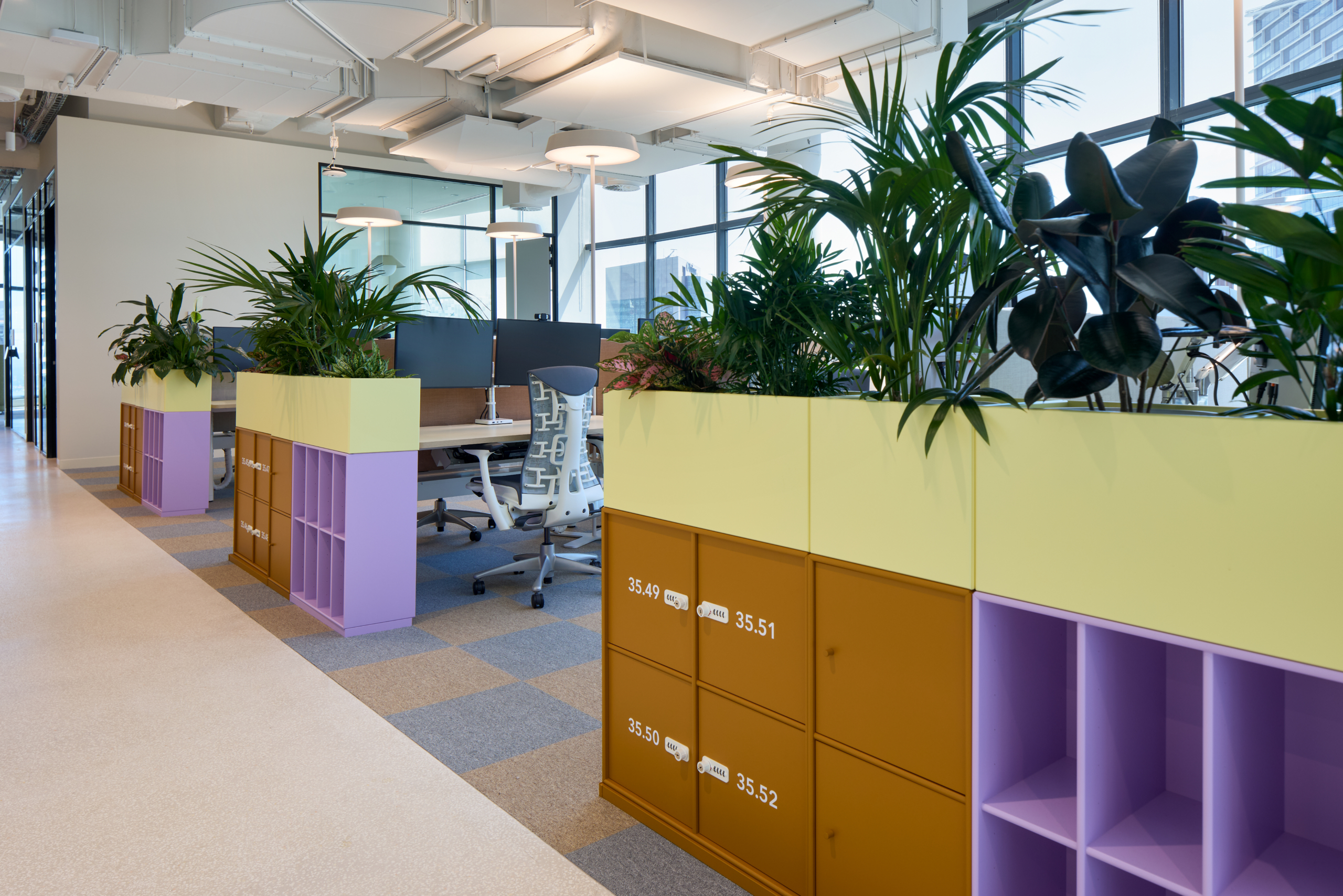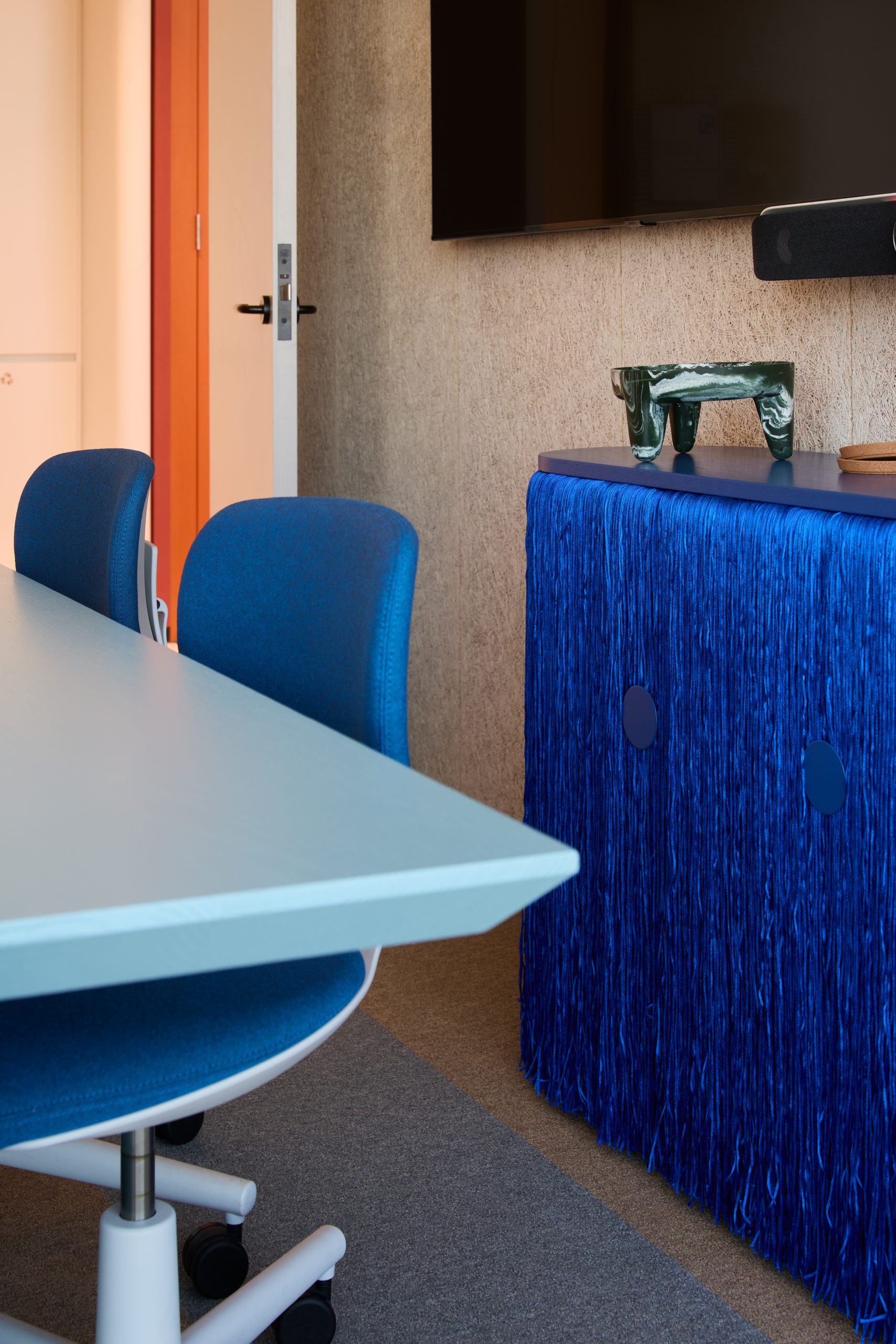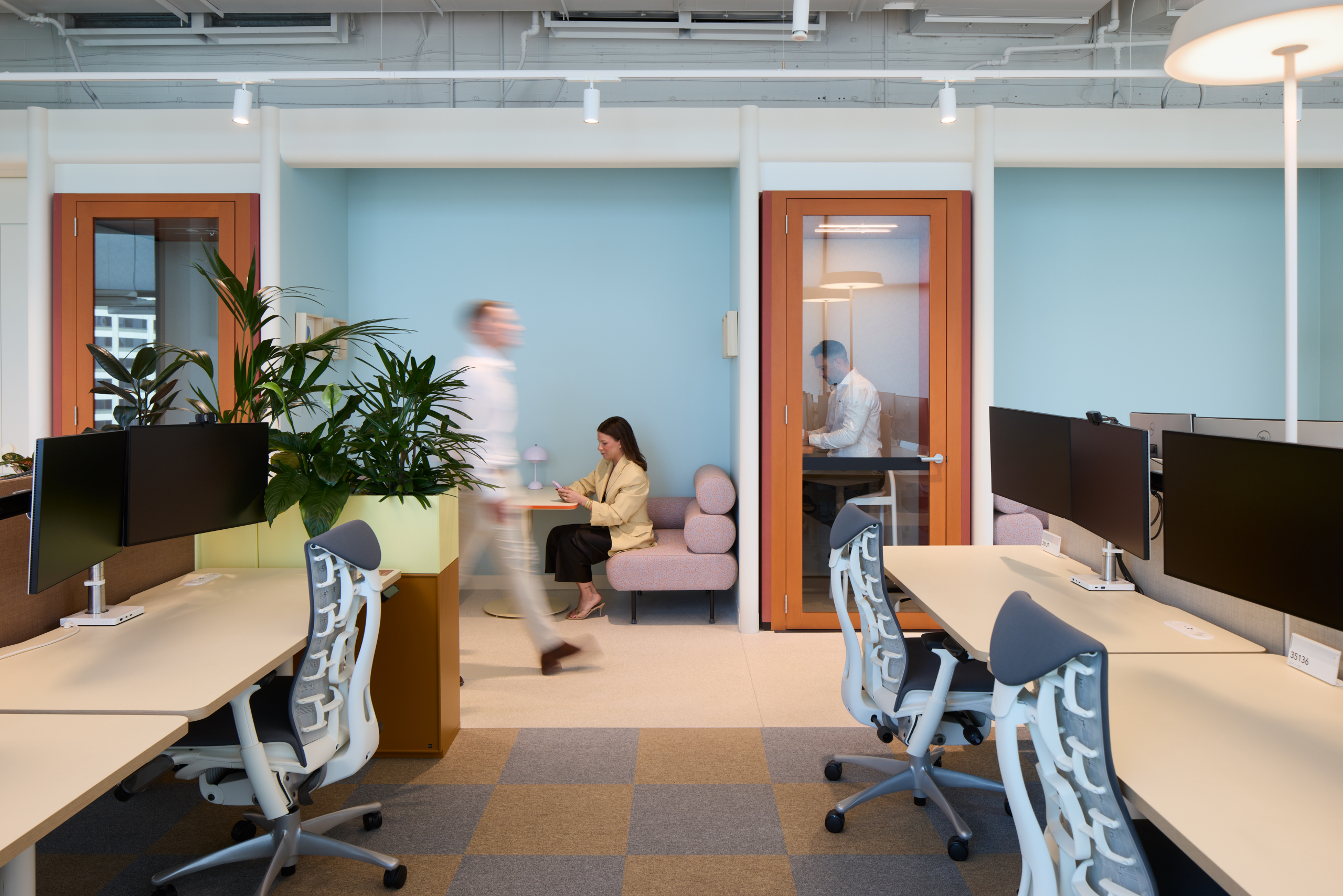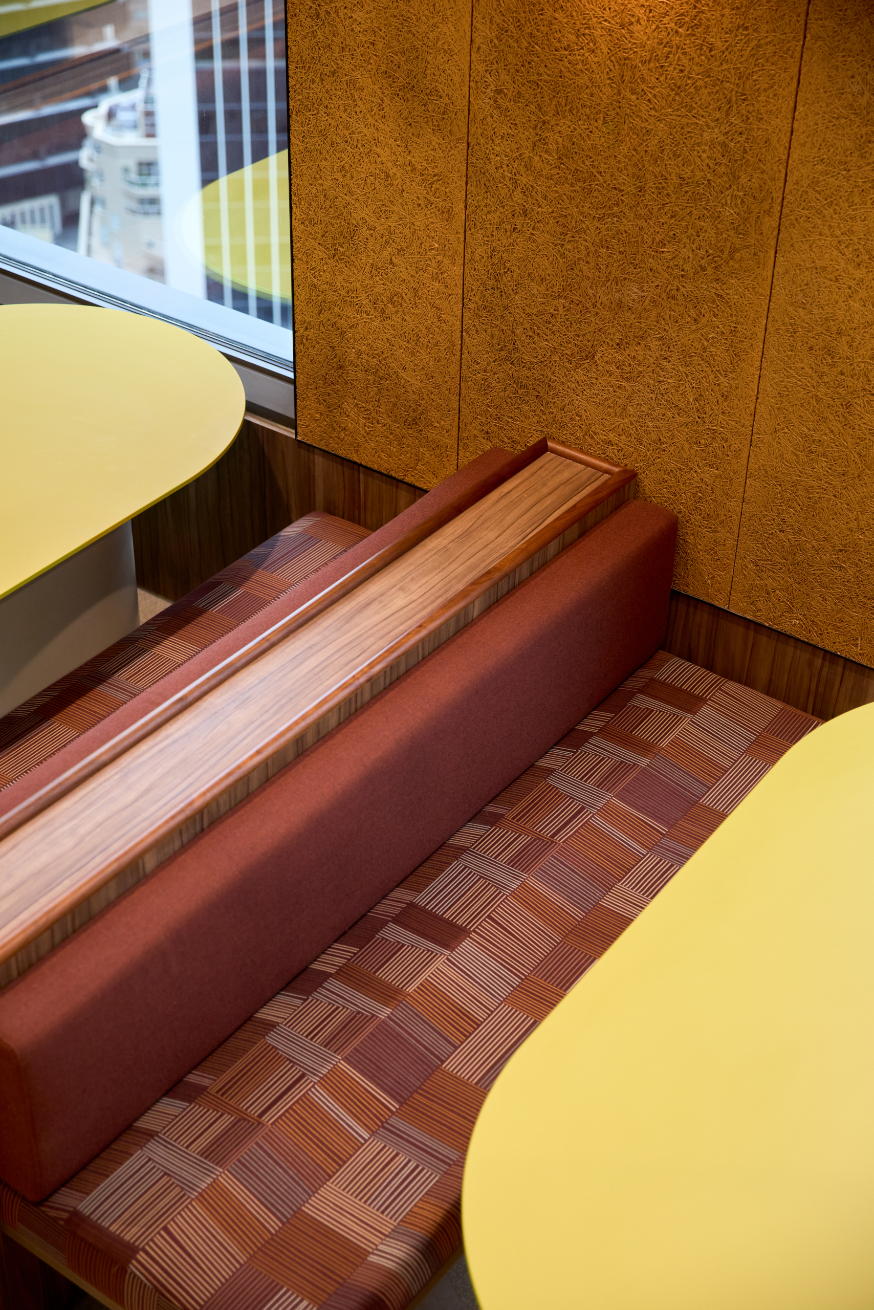 At the core of the project is the deliberate use of colour and light as constructed elements of the workplace. Rather than acting as decoration, colour was delivered as an architectural tool, defining space, guiding movement and reinforcing Intuit’s brand identity. Focus zones are expressed through calm, muted tones, while collaboration and event spaces are energised through bold colour and softer finishes, creating a clear yet intuitive transition between different modes of work.
