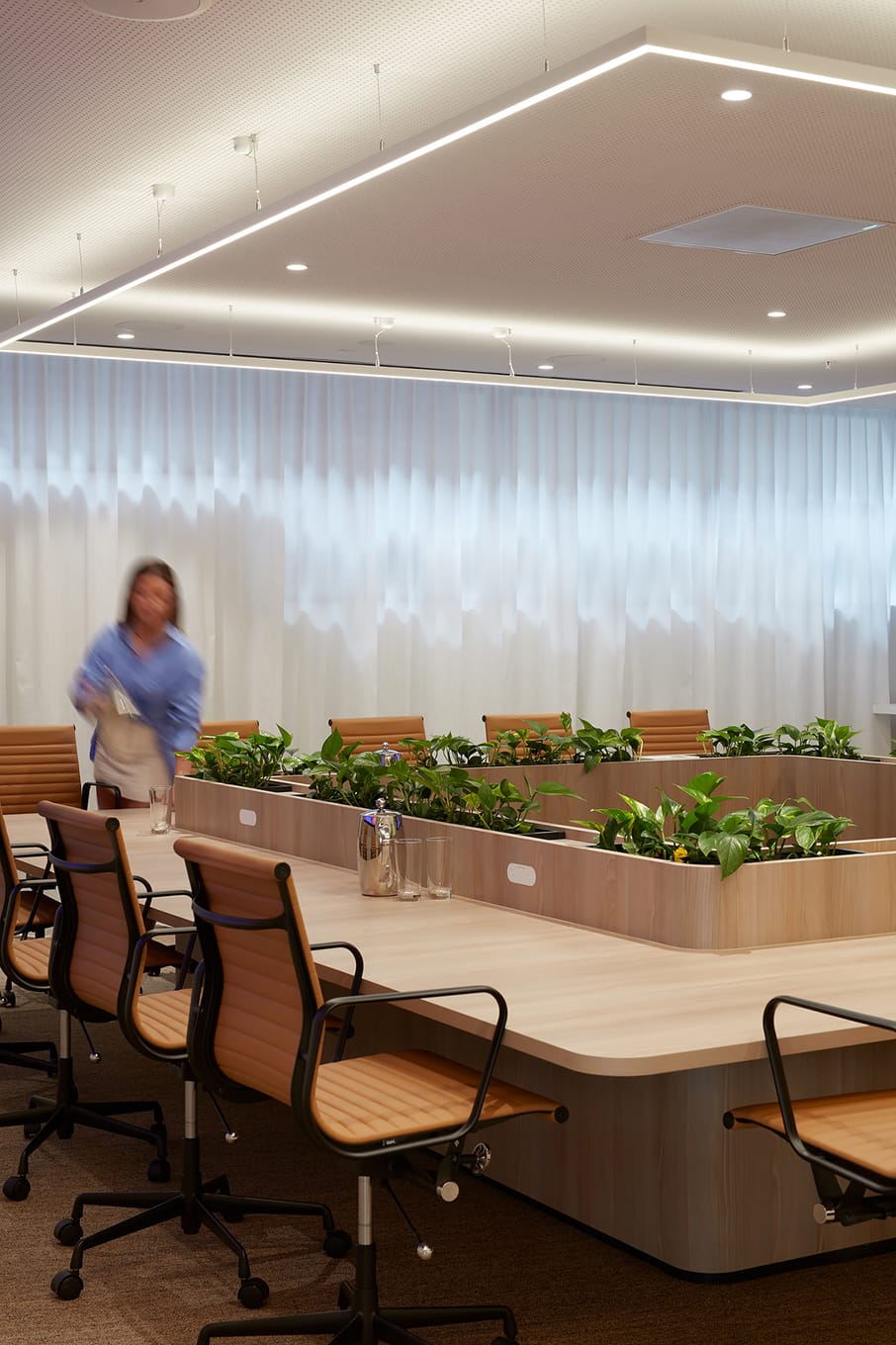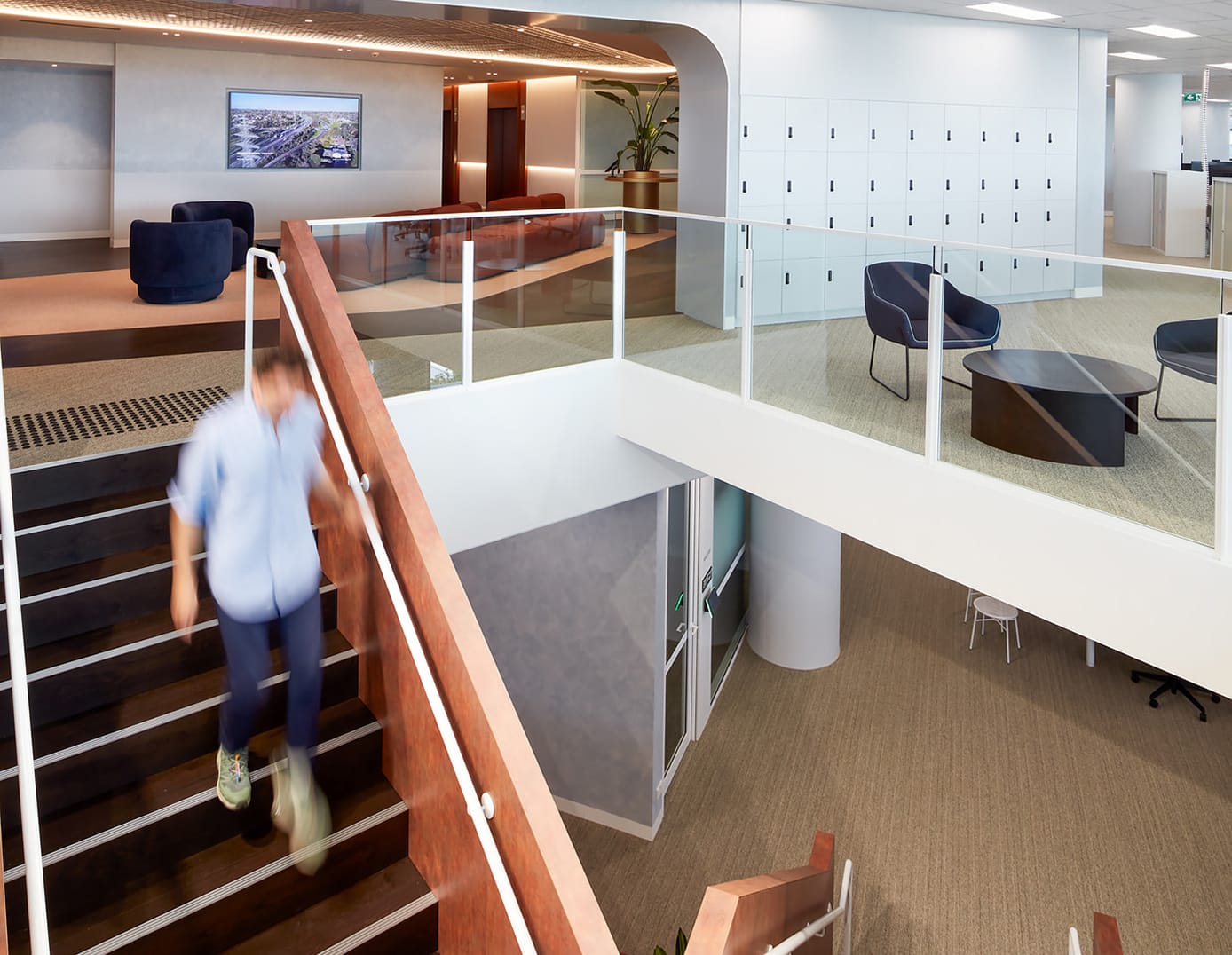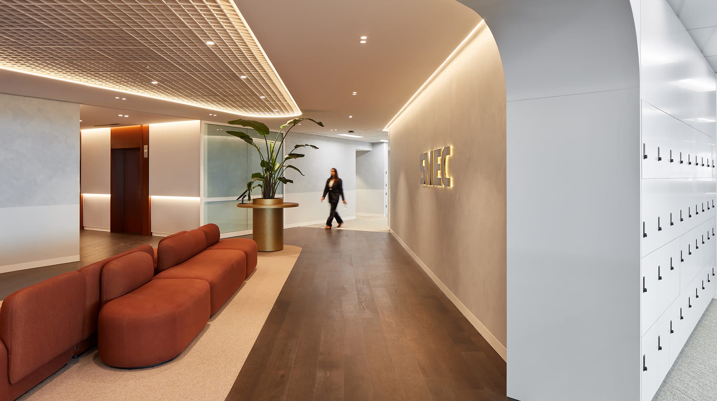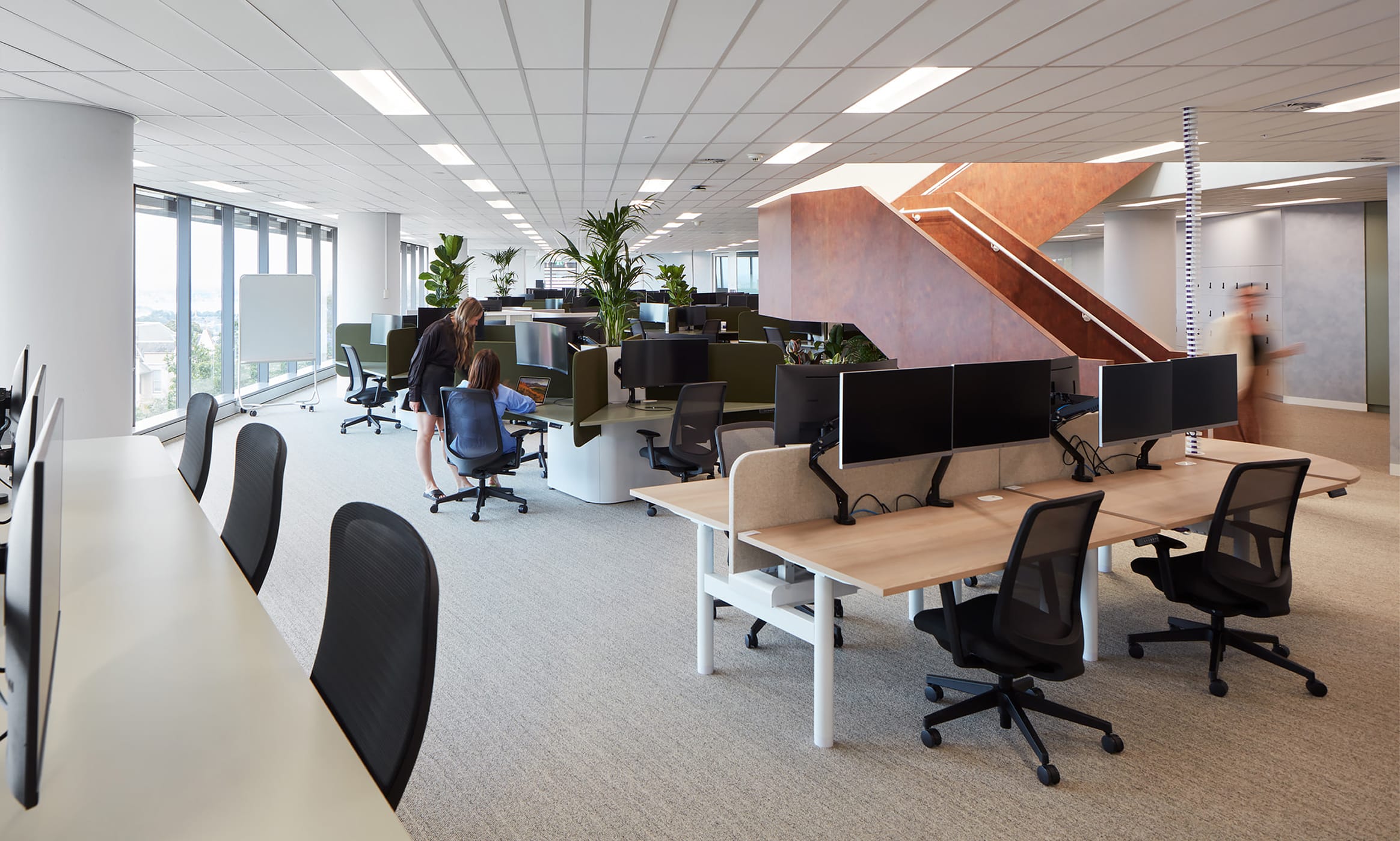Relocating global consulting firm SMEC’s office was an opportunity to tailor the workspaces to the company’s specific working styles. The result is an open, light-filled workspace across two floors that emphasises collaboration and features intricate event and meeting spaces. A collaboration with Gray Puksand and DBS over a focused 16-week construction period, we constructed an interconnecting staircase and included an executive boardroom, high-end AV installations and double-glazed partitions. Expansive views are prioritised throughout, with natural light a key feature.